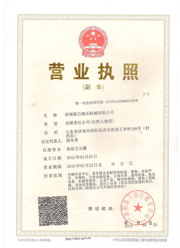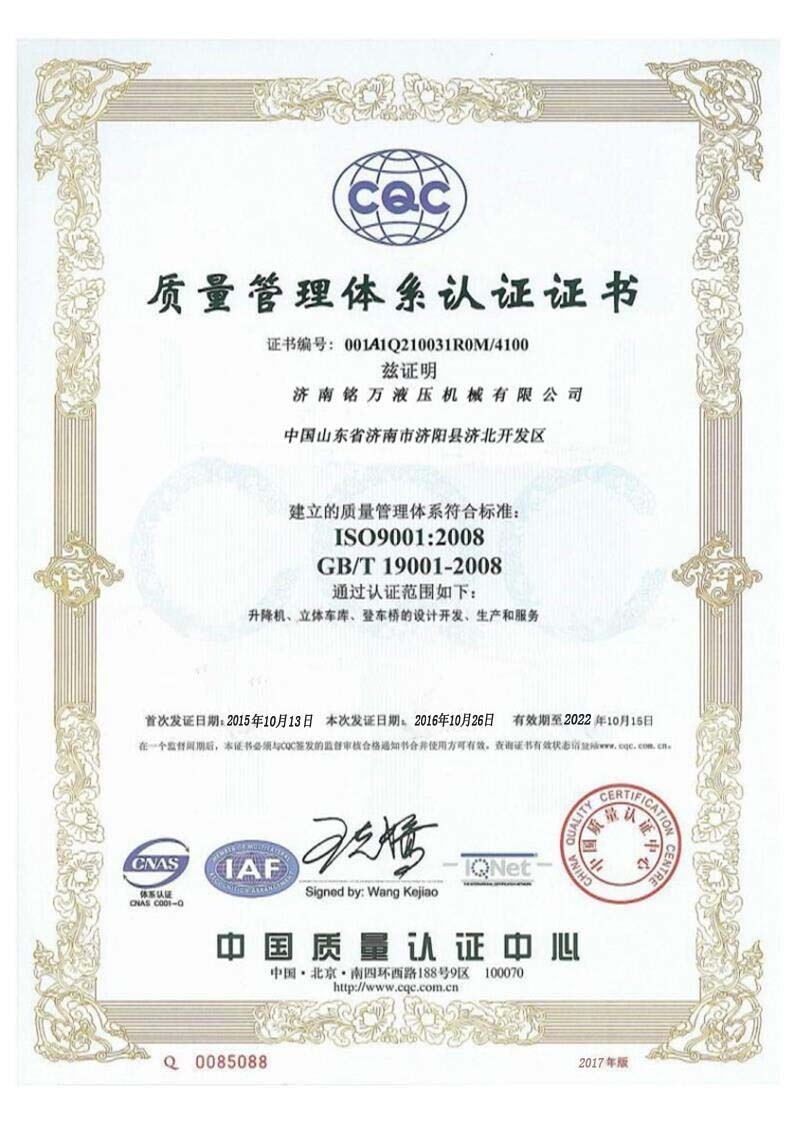 +濟(jì)南銘萬液壓機(jī)械有限公司【原濟(jì)南機(jī)械廠】,是全國制造液壓升降機(jī)、升降平臺(tái)的廠家,產(chǎn)品有八大系列六十多個(gè)品種,規(guī)格齊全、質(zhì)量穩(wěn)定、安全可靠、方便快捷;產(chǎn)品銷往全國各地,深受用戶好評(píng)。升降機(jī)廠家技術(shù)力量雄厚,產(chǎn)品設(shè)計(jì)先進(jìn)、工藝成熟、實(shí)驗(yàn)檢測(cè)手段完善,“質(zhì)量第一,用戶至上”是我們的宗旨。 本公司采用先進(jìn)的管理手段,嚴(yán)密的質(zhì)量監(jiān)控體系和良好的售后服務(wù)隊(duì)伍為我們的產(chǎn)品走向市場(chǎng)創(chuàng)造......